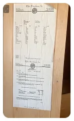 On a build sheet/spec sheet glued inside of one of the kitchen cabinets or the bedroom closet.